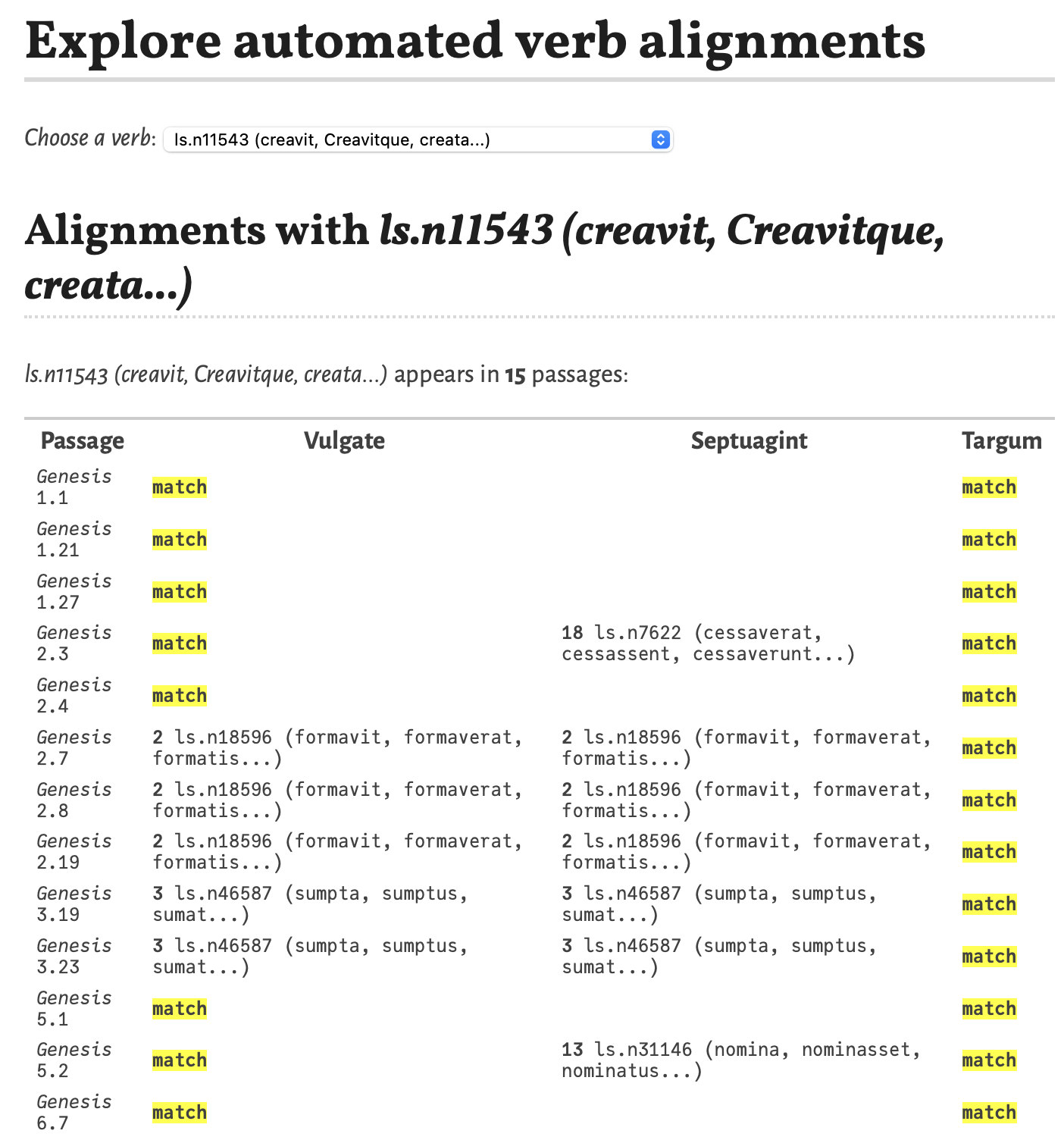 Select a Latin lexeme; summarize alignments in other Latin documents, highlighting matches.