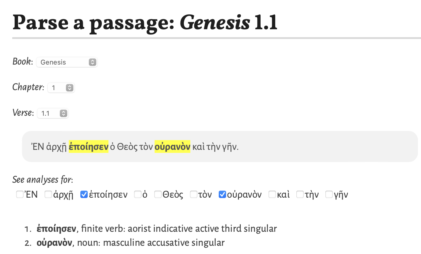 Select a passage of the Septuagint; choose words in the passage to analyze morphologically, highlighting analyzed tokens.